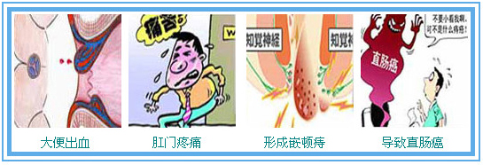 如果长时间置之不理,易使淤血破裂、静脉团变大使病情迅速加重,很可能引发肛瘘、肛裂、肛周脓肿等其他肛肠并发症,严重者甚至会因长期不治,导致肛门内肿大扭曲的静脉壁变薄,排便时破裂,诱发直肠病变。